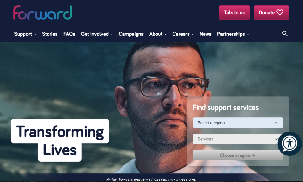• Inclusive and authentic photography, portraying real people in relatable settings to reflect the charity’s diverse community.